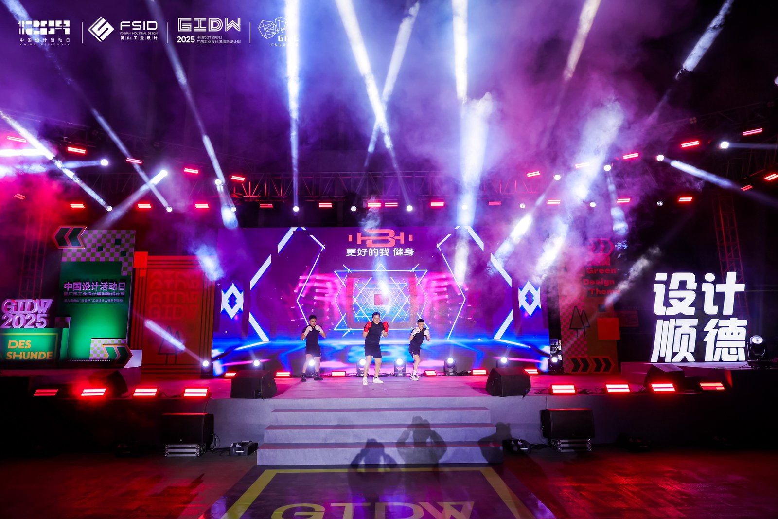 元设计乐队的激昂演出与“更好的我”健身馆的搏击表演,交替呈现设计与艺术、力量的跨界碰撞。