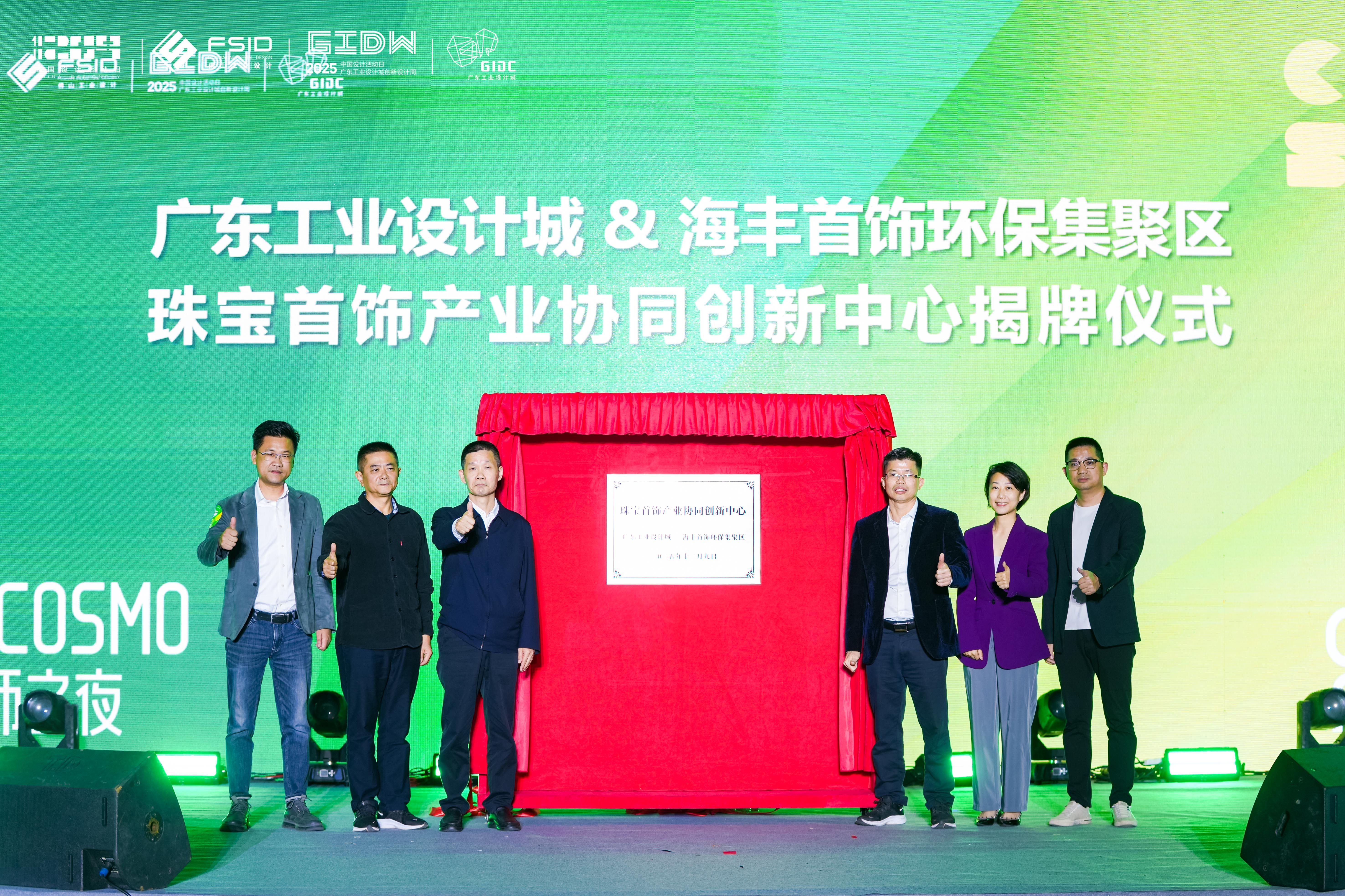 设计无界,协同共赢。当晚,两大跨界合作平台的揭牌成为亮点:广东工业设计城与海丰首饰环保集聚区珠宝首饰产业协同创新中心正式揭牌,将推动设计资源与珠宝产业深度融合,实现跨区域资源共享、优势互补。